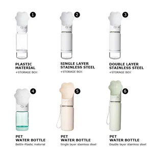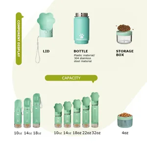 This upgraded pet water bottle (22029A) combines functionality and charm with its playful dog paw-shaped lid. Made of high-quality 304 stainless steel, it offers excellent insulation and is available in multiple capacities (10oz–32oz) to suit different pet sizes. The modular design allows you to mix and match lids and storage boxes, making it ideal for both dogs and cats on the go. Leak-proof, BPA-free, and crafted with a lock switch and water-return system, it's perfect for hiking, travel, or daily walks with your furry companion.