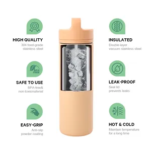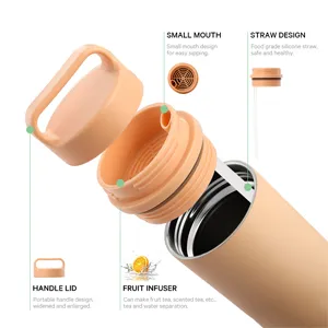 This versatile bottle features a wide-mouth design that makes cleaning effortless and allows easy ice filling for refreshing hydration anytime. The convenient handle lid ensures comfortable carrying, making it ideal for outdoor activities, travel, or daily use. Equipped with a built-in fruit infuser, it effectively separates tea leaves, fruits, or herbs, enhancing flavor while keeping the drinking spout clear. The thickened silicone sealing ring provides a 100% leak-proof guarantee, ensuring secure, spill-free transport. A practical, functional design perfect for lifestyle and fitness drinkware collections.